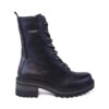 Anfibio Wrangler Ballantyne da donna in similpelle martellata nera con doppio laccio disponibile, pratica zip interna e linguetta posteriore in tessuto. Zona tallonare con stampa maculata, fodera in tessuto e fondo in gomma antiscivolo con tacco di 5cm.