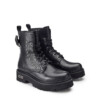 Design deciso e animo glam rock : Cult rivisita lo storico anfibio Slash in pelle nera impreziosendolo con una linea di borchie sferiche e grintosi fiocchi con dettaglio piercing nella parte posteriore della scarpa. Con ampia stringatura tipica del modello, gli intramontabili combat boots sono caratterizzati da una silhouette elegante e da una moderna suola carrarmato in EVA che li rende comodi e adatti a completare outfit casual o a dare un tocco grintoso ai look più formali.