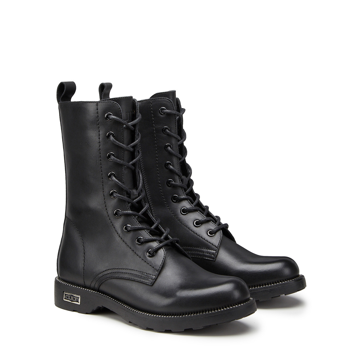 Comodi ma senza rinunciare all’anima rock gli anfibi stringati firmati da Cult per questo inverno. Un modello intramontabile di stivaletti in pelle, con occhielli in metallo, targhetta con logo sulla suola di gomma e tirante posteriore. Da indossare con jeans, pantaloni o gonne corte