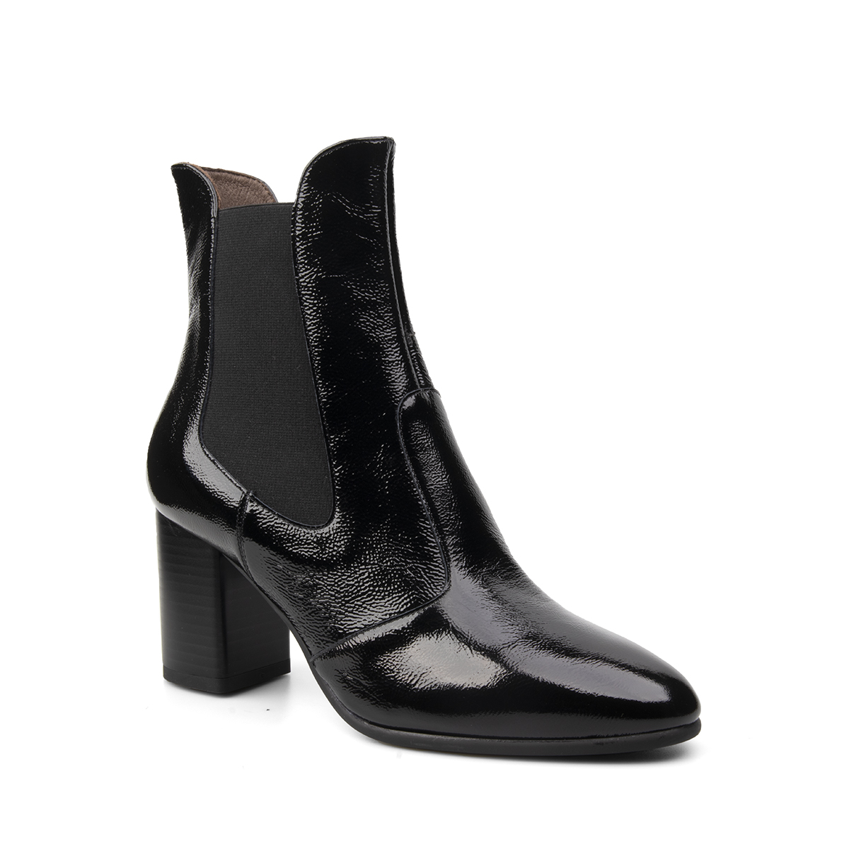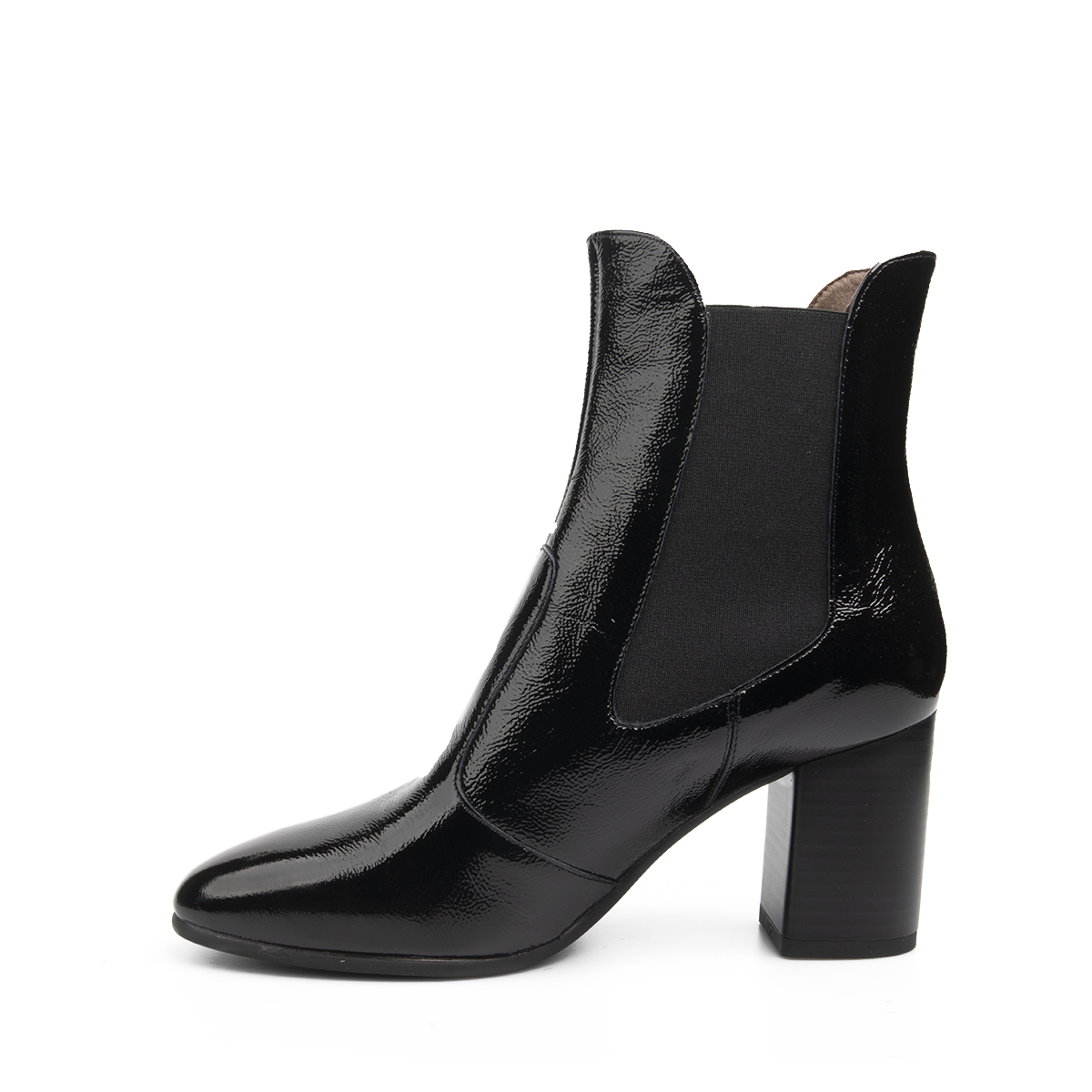 Beatles Nerogiardini in morbido naplak con elastico laterale, punta affusolata e tacco a blocco. Suola in gomma. Altezza tacco 7 cm. MADE IN ITALY