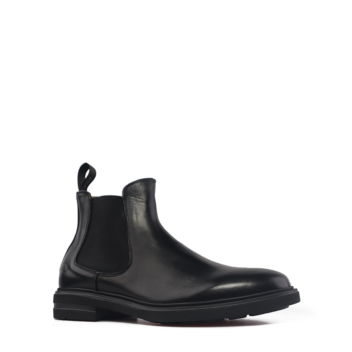 Chelsea uomo nero con elastici laterali e linguetta posteriore per facilitare la calzata. Suola 3,5 cm. Tomaia in pelle e tessuto, interno in pelle e suola in gomma. Made in Italy