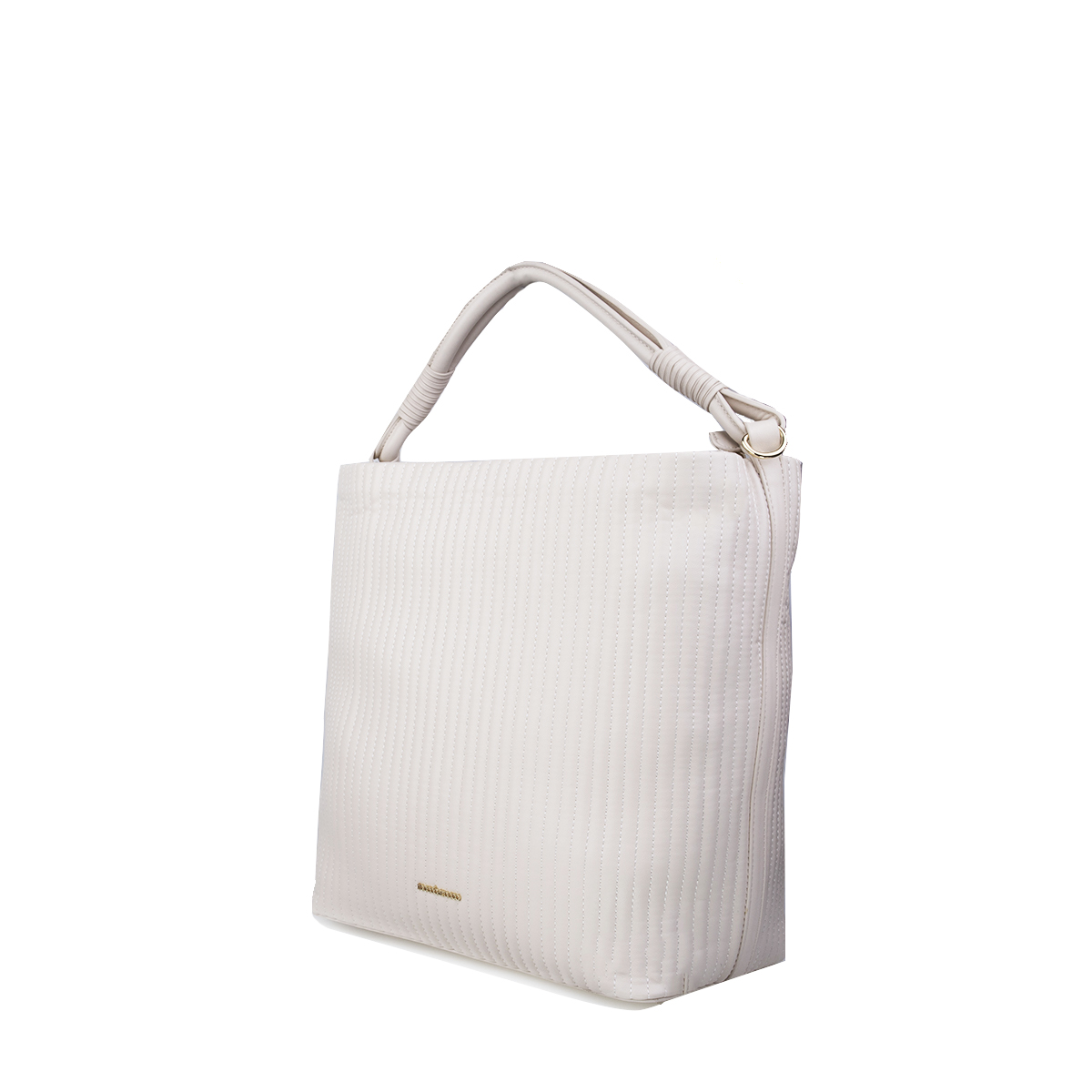 Sacca soft in nappa con lavorazione geometrica che ricorda un plissé. lI morbido manico tubolare a spalla e’ un tratto distintivo