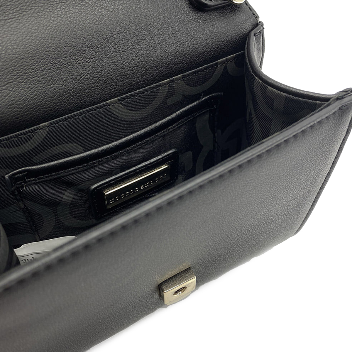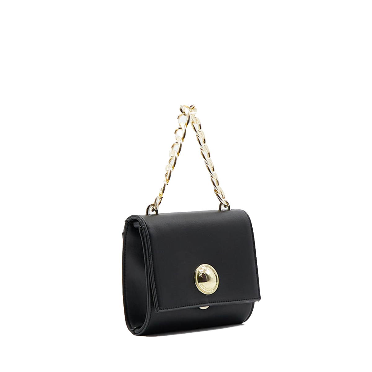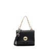 Pochette in grana e personalizzazione bottone con logo inciso Roccobarocco. E’ decorata con una maxi catena oro chiaro.