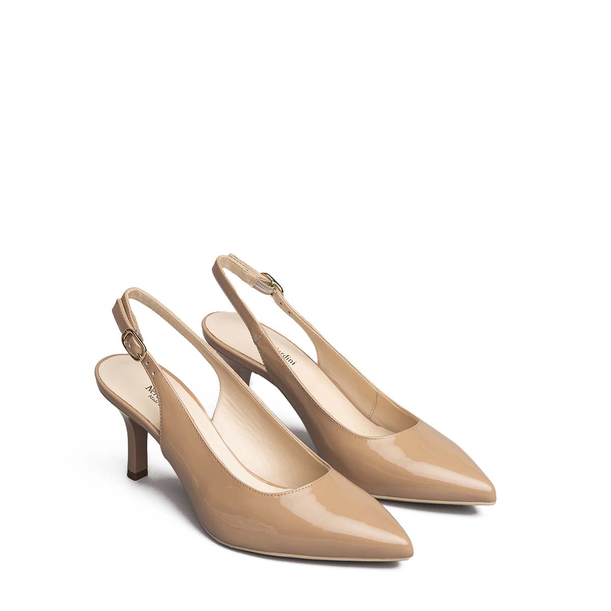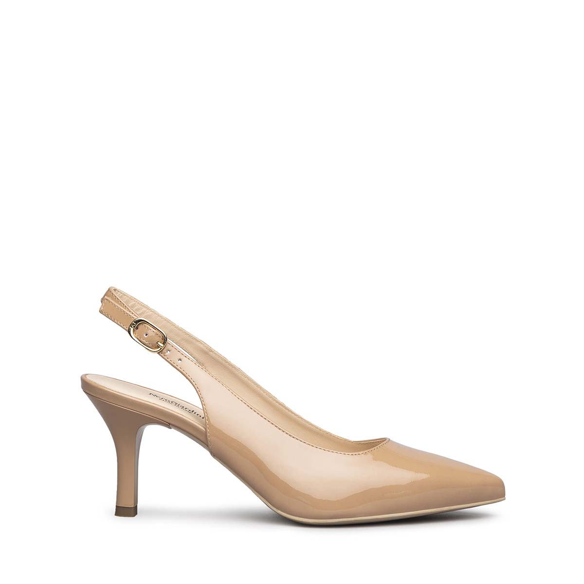 Décolleté Vernice Nudo, con tomaia e interno in pelle, fondo in gomma con tacco 5 cm. Raffinatezza ed eleganza. Made in Italy. Adatto ad ogni tua occasione speciale.