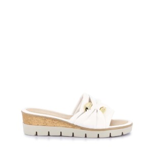 Sandalo femminile, modello sabot con la quadrata ma armonica ed ingentilita. L’altezza del tacco, realizzato in ABS lucido, è 6,5cm, pur essendo volumetrico e ben saldo, mantiene un aspetto femminile e sinuoso, caratterizzato dal dettaglio dell’ accessorio personalizzato a fascetta con logo in metallo gold incastonato nella parte inferiore. Realizzato in pelle, presenta l’accessorio morsetto geometrico e sfaccettato in rifinizione Gold. Una leggera imbottitura interna, rende l’aspetto della tomaia, avvolgente e confortevole.