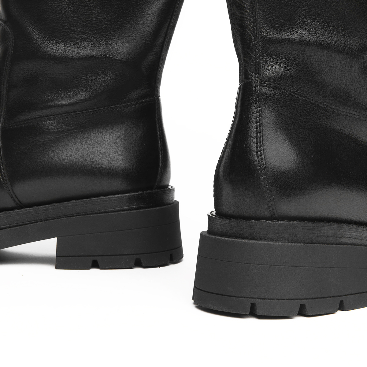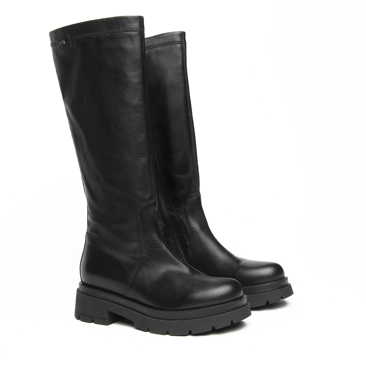 Stivali per Donna NeroGiardini realizzati in pelle con nappa morbidissima sul gambale. Allaccio tramite mezza lampo lato interno. Fodera in tessuto, sottopiede in pelle, fondo in gomma con tacco 5cm.