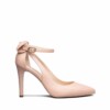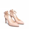 Décolleté in morbida nappa con fiocco posizionato nella parte posteriore della calzatura, aperture laterali e cinturino alla caviglia. Punta affusolata e tacco a stiletto di 10 cm. Design raffinato per un look chic e ricercato.