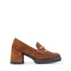 Un accessorio senza tempo che ogni anno si rinnova e torna più forte che mai. Questo mocassino in camoscio è l’unione ideale tra classe e grinta: si presenta con punta e tacco squadrati, linee eleganti e un raffinato morsetto in metallo dorato. Completerà perfettamente i vostri look da ufficio con un classico tailleur giacca e pantalone, ma sarà anche l’ideale abbinato ad outfit divertenti con calze coloratissime e gonne svasate.