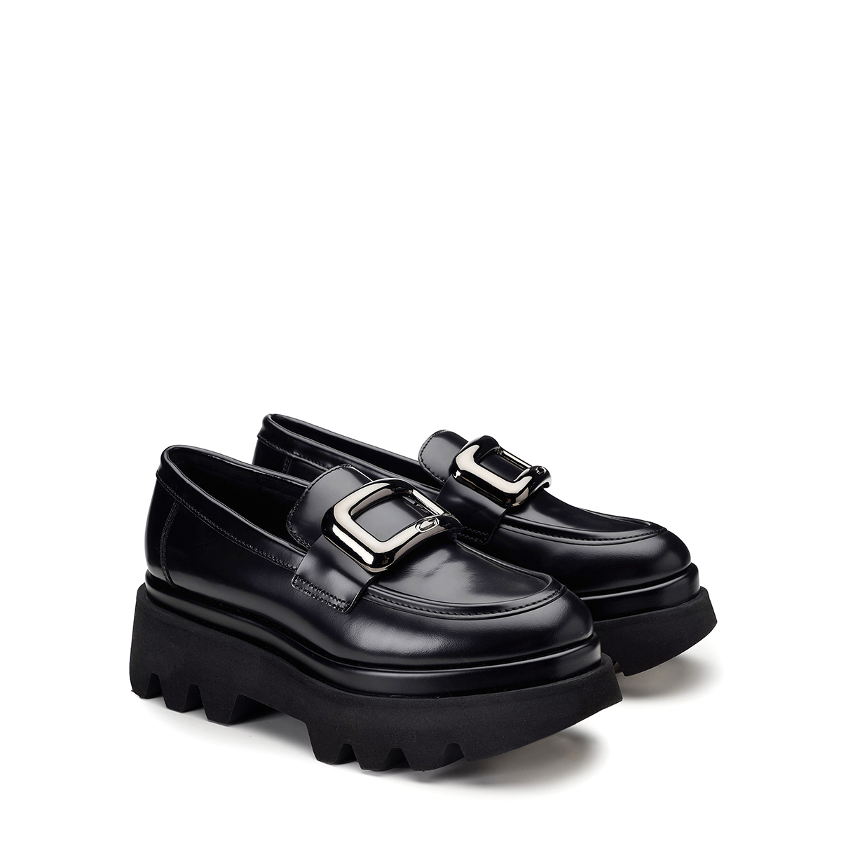 Nuovo modello dal gusto femminile e contemporaneo per questo mocassino da donna di Guardiani è caratterizzato da una suola dentellata platform. L’ispirazione urban dai volumi chunky e dall’attitude forte ed energica, si contrappone alle linee eleganti della tomaia in pelle spazzolata, con una placca metallica sul davanti. Il fussbett assicura una calzata ammortizzata.