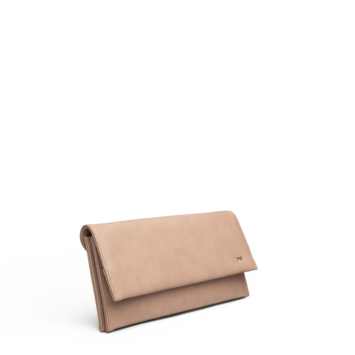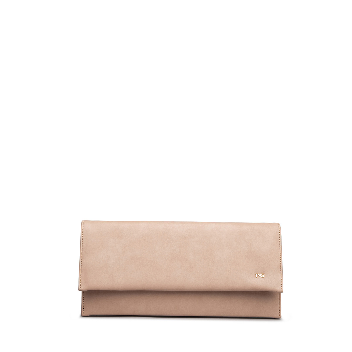 Pochette realizzata in materiale tecnico con stampa vitello. Due comodi scomparti interni con tasca di servizio. Chiusura con bottone automatico. Dotata di una pratica tracolla a catena in abbinamento. 24x14x4 cm