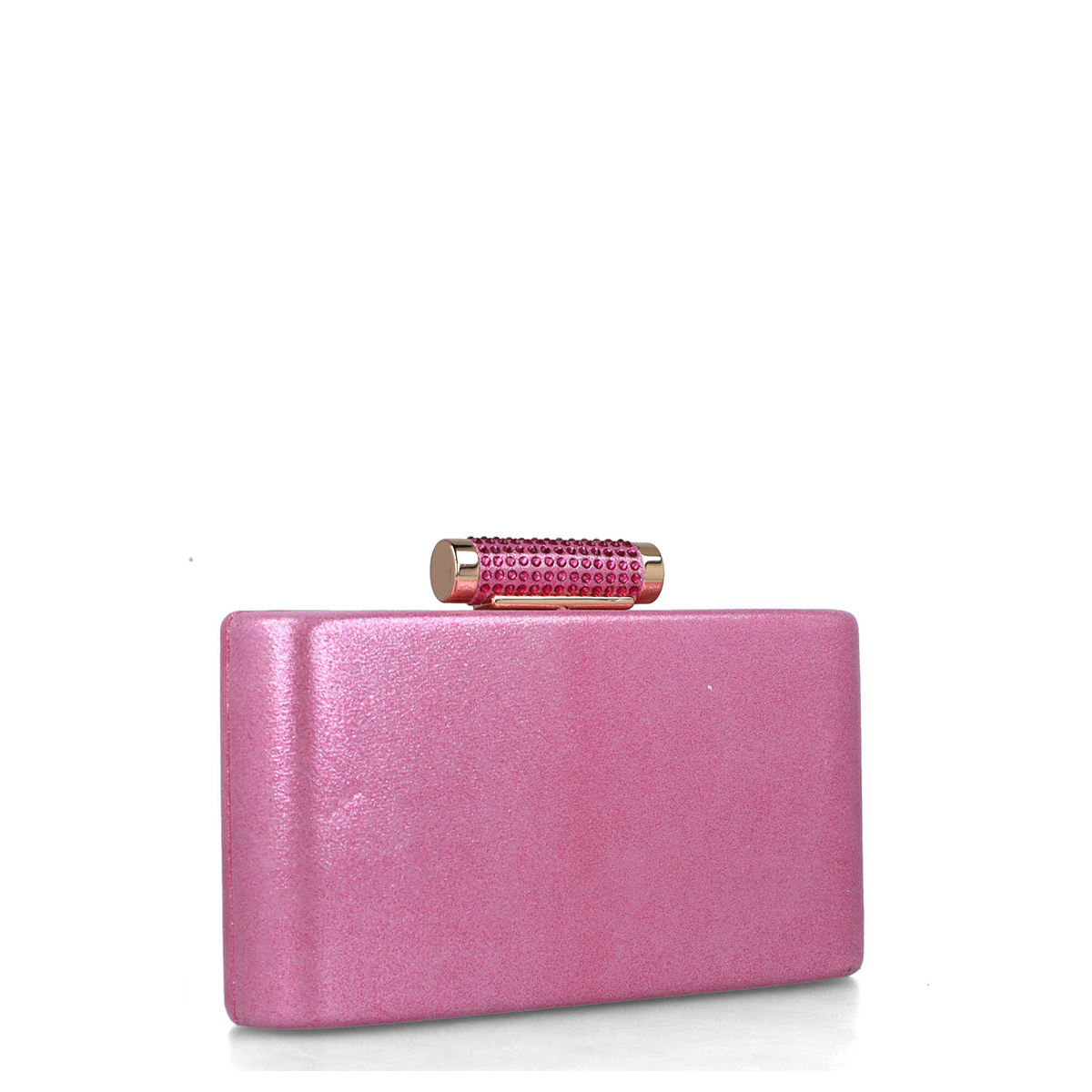 Pochette elegante in tessuto satinato. Piccola ma non troppo, dall’asetto rigido, è una borsetta molto luminosa.