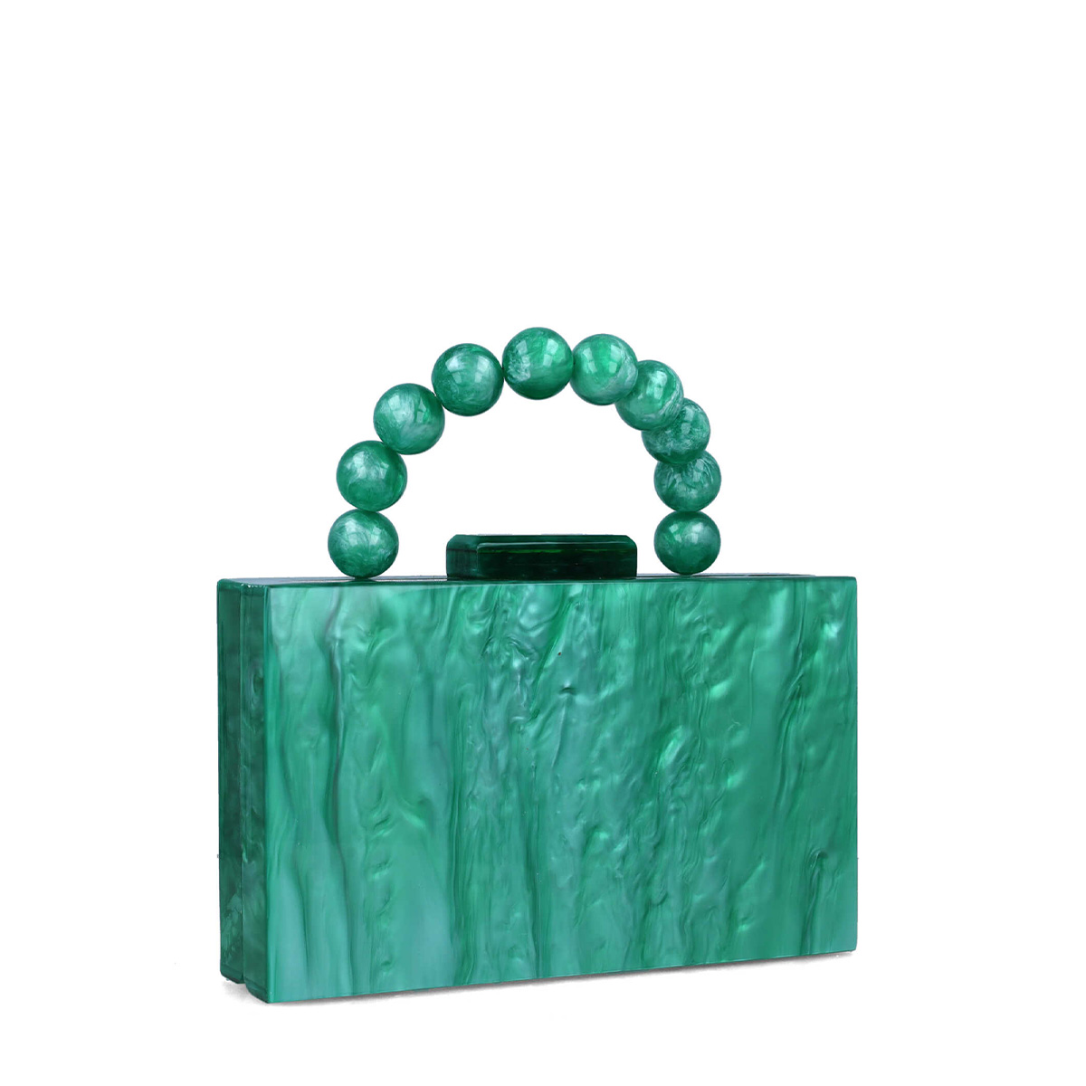 Pochette elegante in tessuto satinato. Piccola ma non troppo, dall’asetto rigido, è una borsetta molto luminosa.