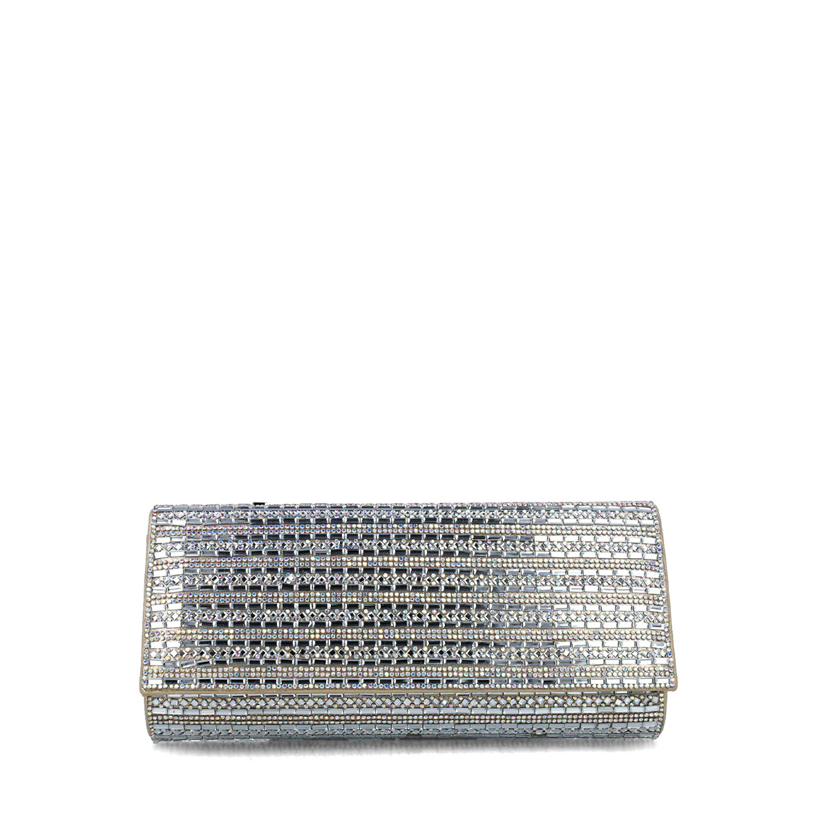 Pochette elegante in tessuto satinato. Piccola ma non troppo, dall’asetto morbido, è una borsetta molto luminosa.