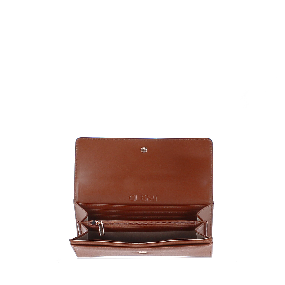 L’interno presenta una tasca aperta, numerose tasche portatessere e una tasca con zip, perfette per contenere banconote, monete e documenti. La chiusura con bottone automatico permette una facile apertura quando necessario.