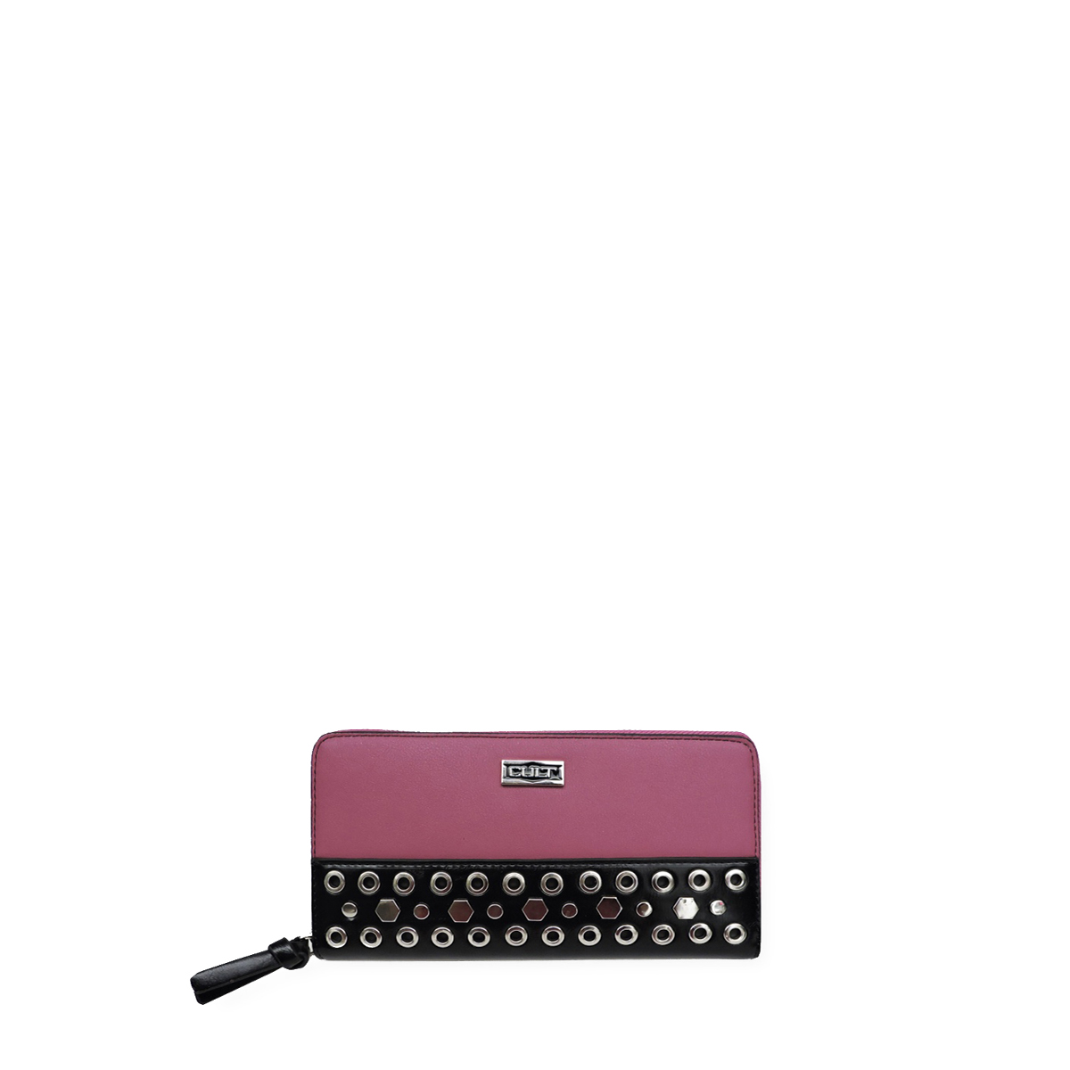 Portafoglio da donna in pu con dettagli a contrasto. L’articolo 1636 ha la chiusura con zip.