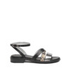 Sandali in pelle con listini lissati incrociati in pelle mirror opaca e pelle glitterata stampa animalier. Tacco di 2,5 cm e cinturino incrociato alla caviglia. Design ricercato per questi sandali must have da indossare tutto il giorno.