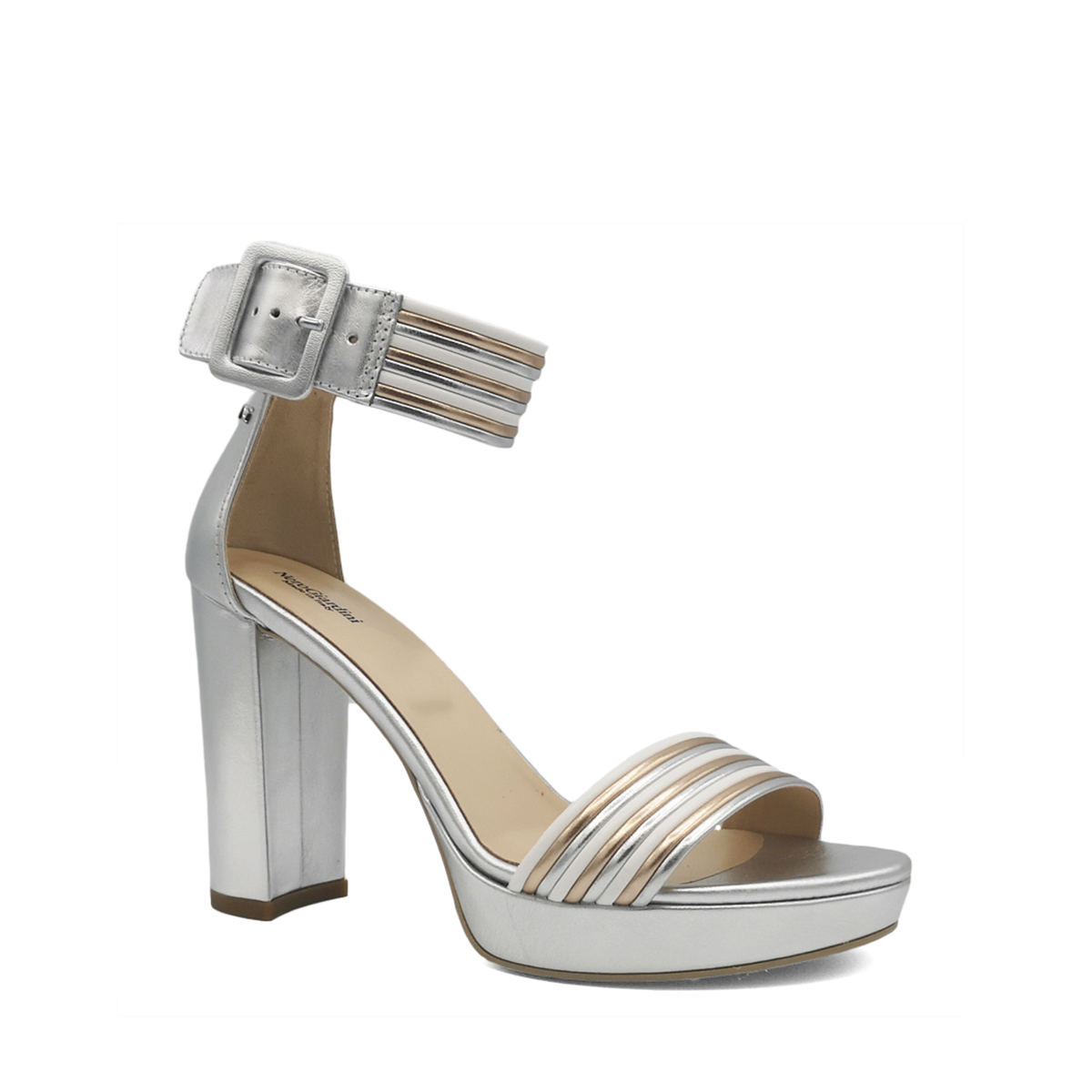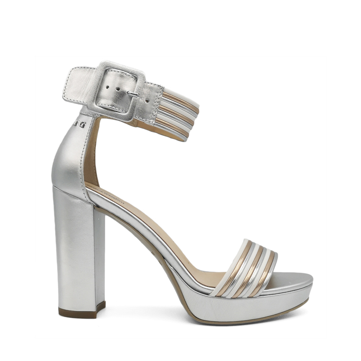Sandali in pelle con listini multicolor e fibbia ricoperta in pelle tono su tono.