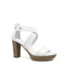Sandali in pelle con listini incrociati sul davanti. Tacco di 9 cm e plateau di 2,5 cm. La zip posteriore consente una calzata facile e veloce. Design minimale per un look grintoso e di tendenza.