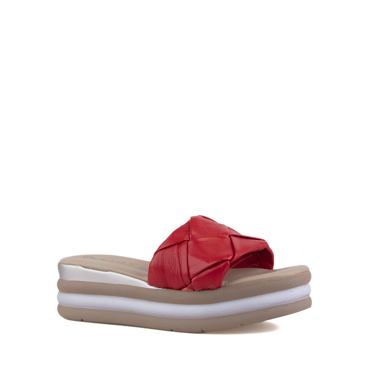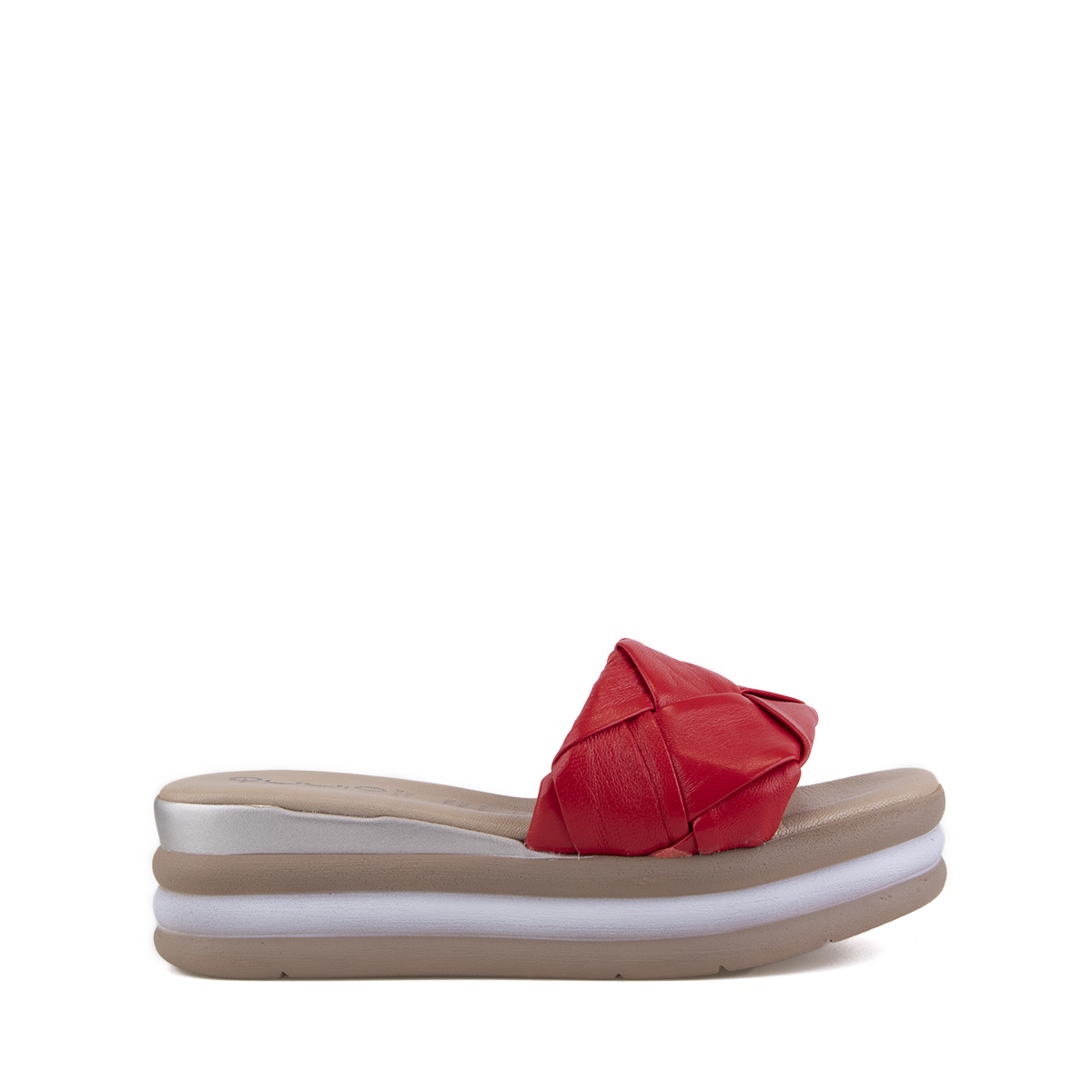 Sandalo ciabatta Donna in pelle e fascia in pelle intrecciata Il sottopiede in pelle favorisce una calzata comoda e confortevole.