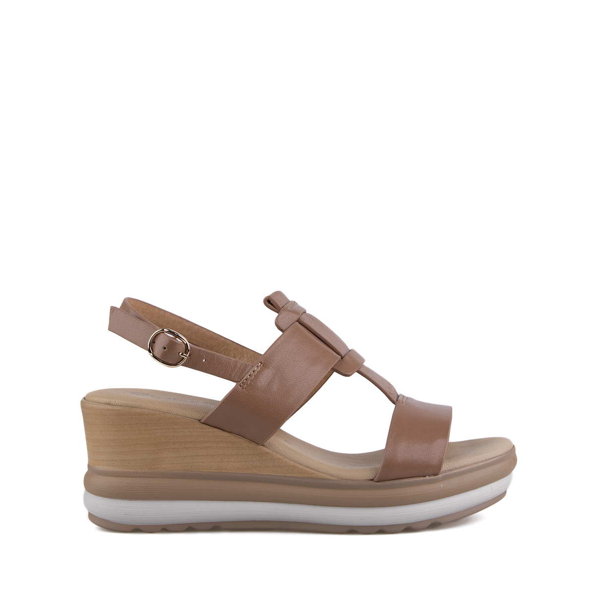 Sandalo Donna pelle con zeppa. Il sottopiede in pelle favorisce una calzata comoda e confortevole.