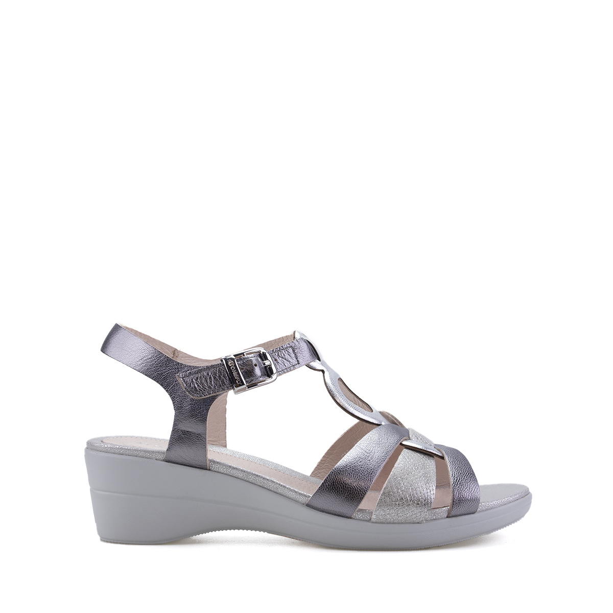 Sandali con zeppa da donna con gancetto e fondo in gomma.