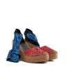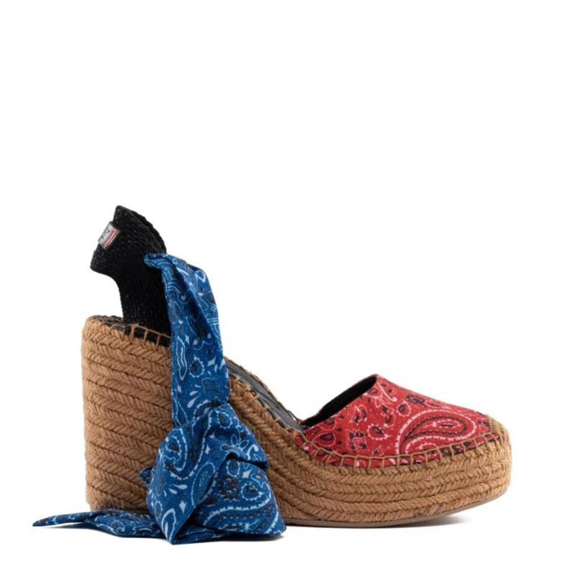 SANDALO DONNA ALTEZZA ZEPPA 105 mm ALTEZZA PLATEAU 35 mm TOMAIA: 100% tela stampata FODERA: 100% tela SOTTOPIEDE: 100% tessuto