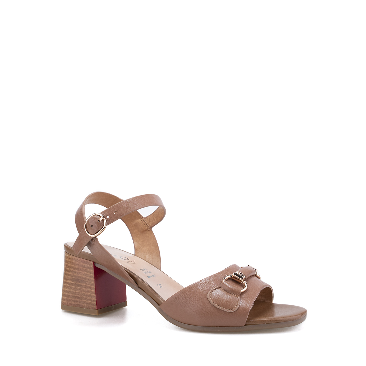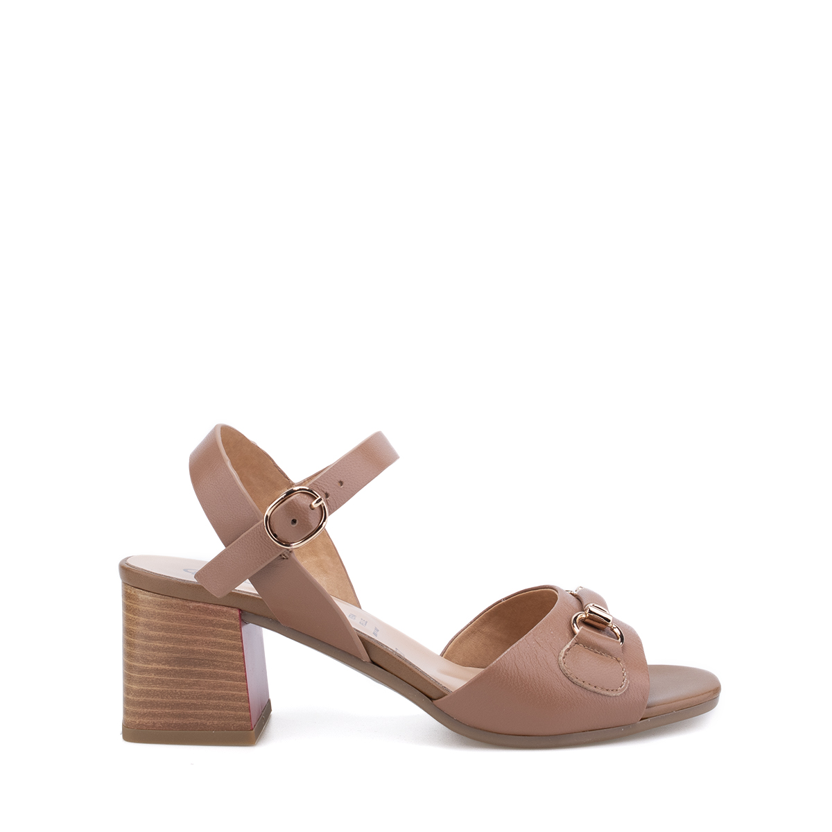 Sandali in pelle con cinturino. Tacco 50mm. Il sottopiede in pelle favorisce una calzata comoda e confortevole.
