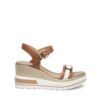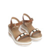 Sandali in pelle in due colori con fascia impreziosita da accessori metal. Zeppa multicolor di 7,5 cm. Dettagli ricercati per questa zeppa di tendenza.