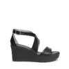 Sandali in pelle con listini incrociati sul davanti. Zeppa di 7,5 cm con stampa monogram geometrica. Design minimal per questi sandali da indossare tutto il giorno.