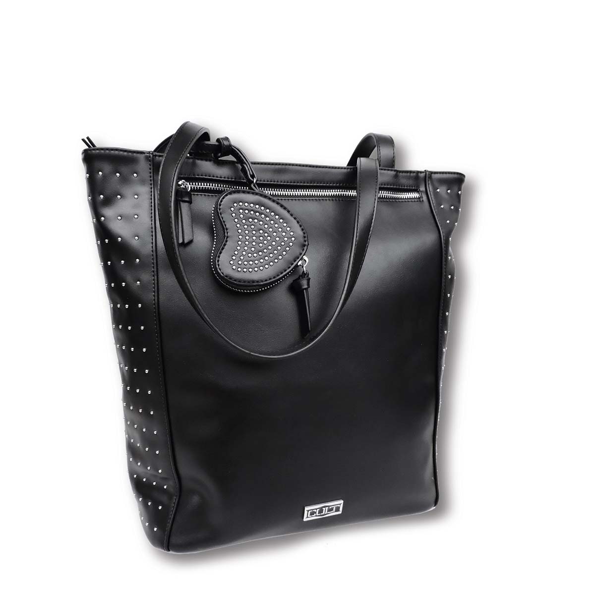 Capiente e rock, la nuova shopper firmata Cult è un accessorio da non lasciarsi sfuggire. Realizzata in ecopelle, vi accompagnerà nelle giornate più indaffarate sia a mano, grazie al manico corto, che a spalla, grazie alla tracolla rimovibile