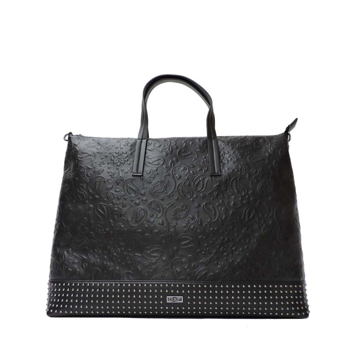 shopper firmata Cult è un accessorio da non lasciarsi sfuggire. Realizzata in ecopelle con stampa in rilievo, impreziosita da logo