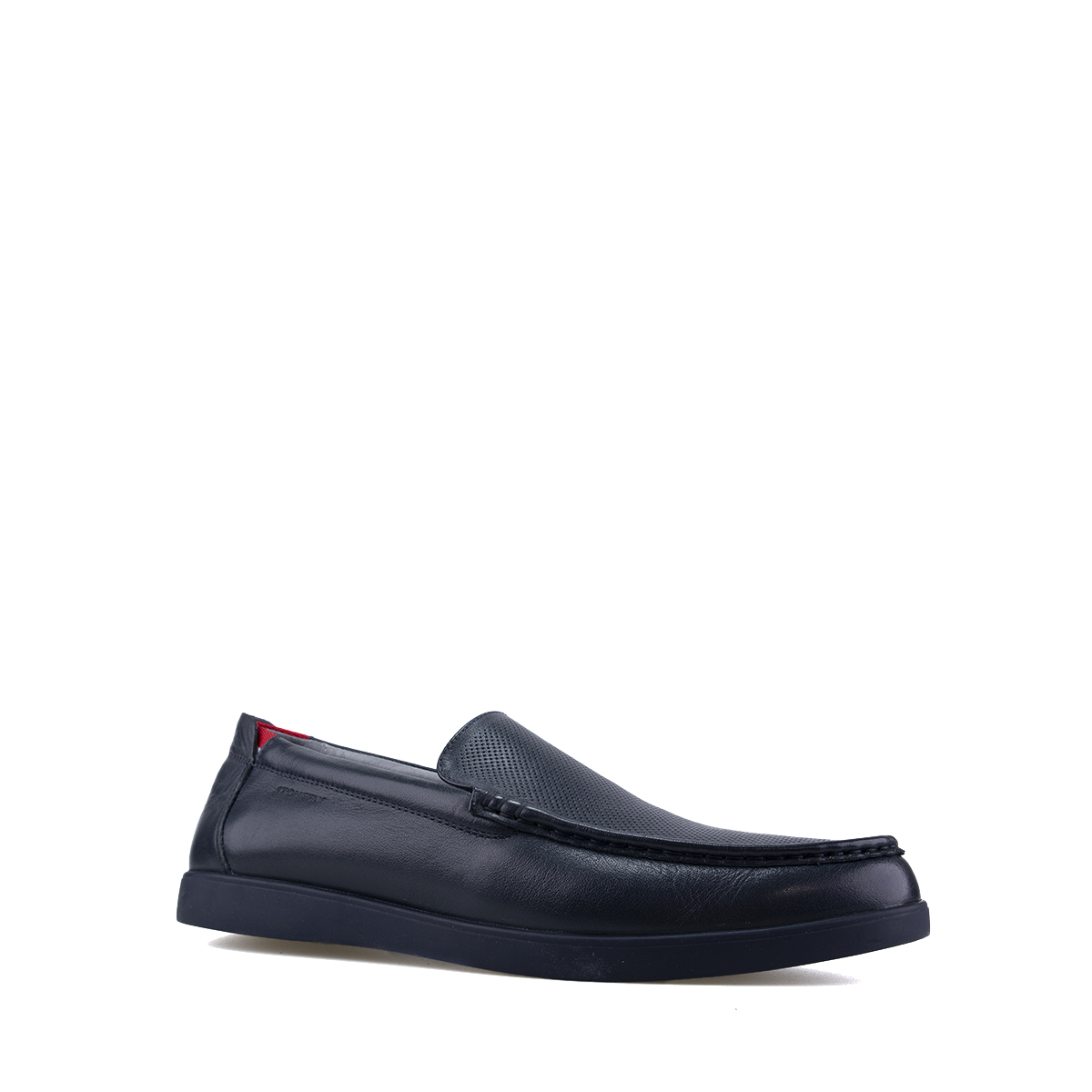 Mocassini in pelle, suola in gomma, un cuscinetto di gel posto nel tallone asseconda la camminata e garantisce un effetto ammortizzante.