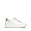 Sneakers in pelle con inserto in pelle laminata e laccio lurex bicolore. Fondo a cassetta di 4 cm. Il sottopiede con tecnologia DryGo!® assorbe l’umidità e garantisce confort e benessere.