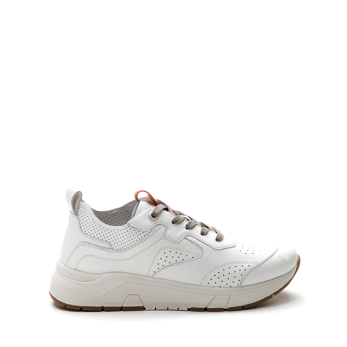 Scarpa con laccio con tomaia in pelle e suola in gomma. Tecnologia blu soft memory per un effetto ammortizzante e traspirante.