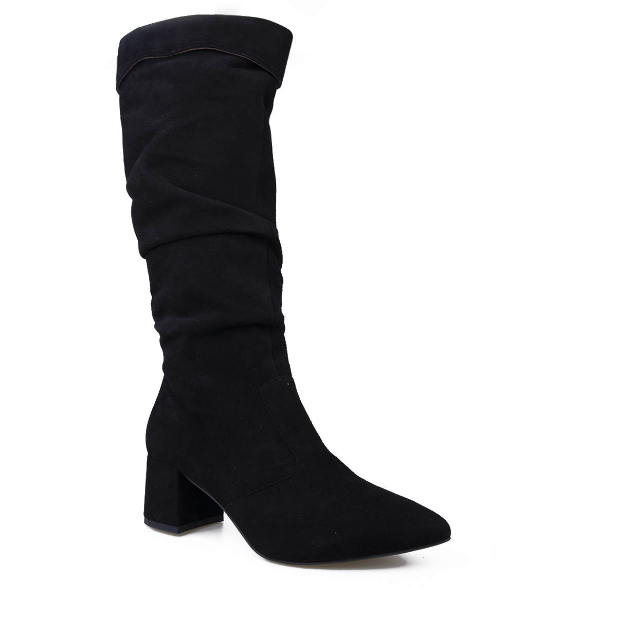 Stivale in camoscio con punta affusolata e tacco rivestito in camoscio. La zip laterale interna consente una calzata pratica e veloce. Per un look chic e ricercato.