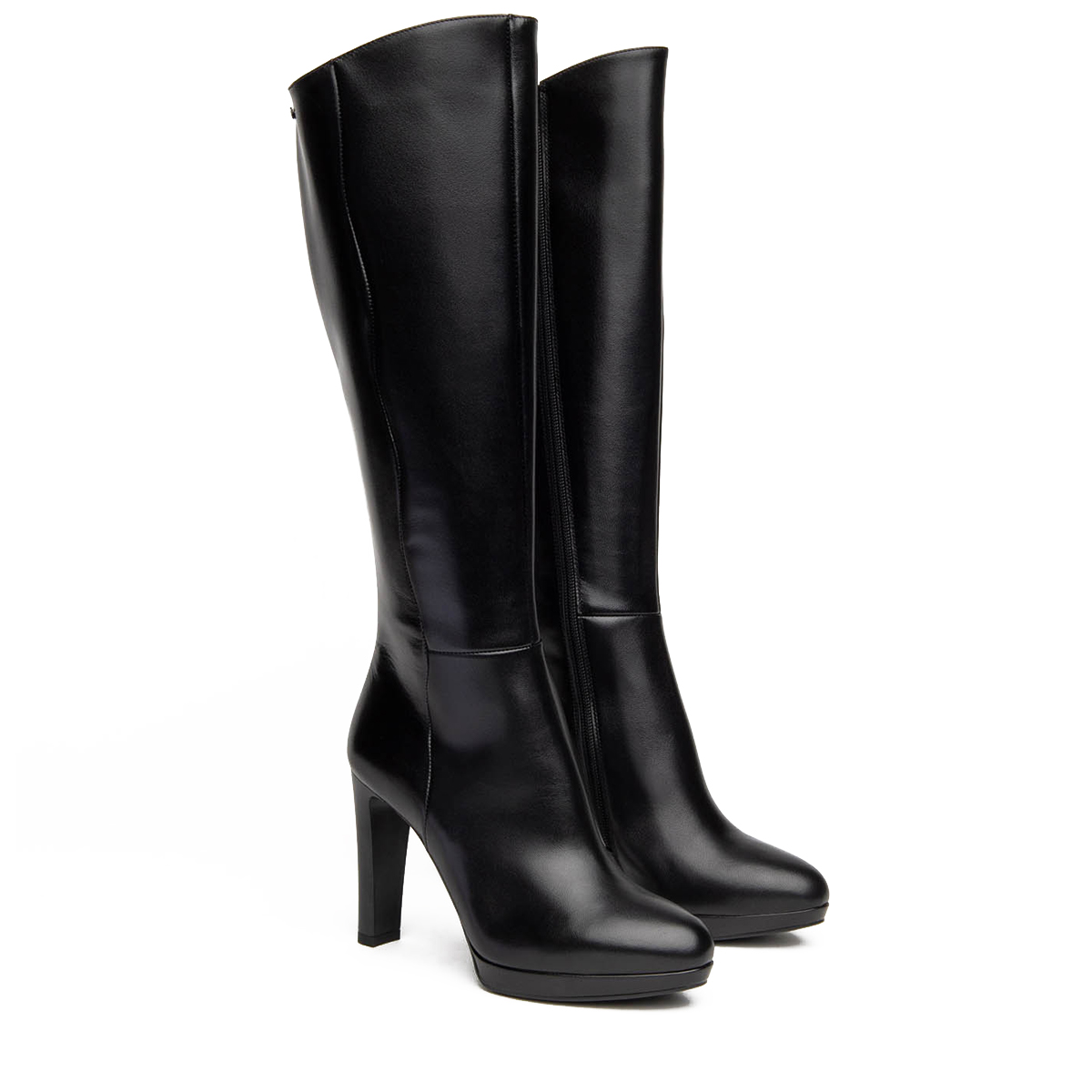 Tacco a coda di 10 cm abbinato ad un plateau di 1,5 cm. Zip laterale interna ed elastico sulla parte alta del gambale per una calzata facile e veloce. Design essenziale ed elegante per un must have del guardaroba femminile.
