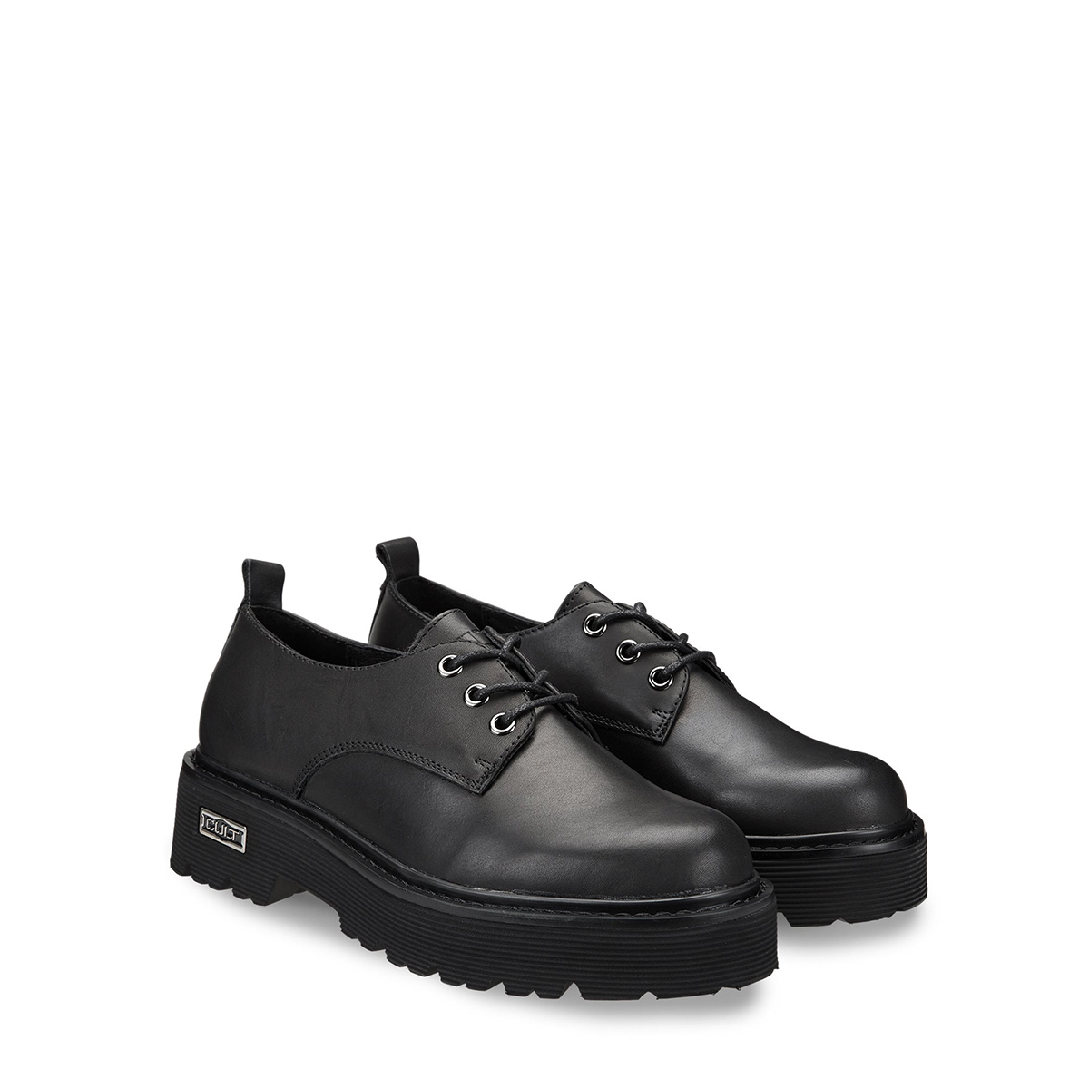 Intramontabili queste derby firmate Cult della famiglia Slash. In pelle nera, volumi aumentati con occhielli in metallo e chiusura con stringhe, questi derby conferiranno un tocco rock ad ogni vostro outfit.
