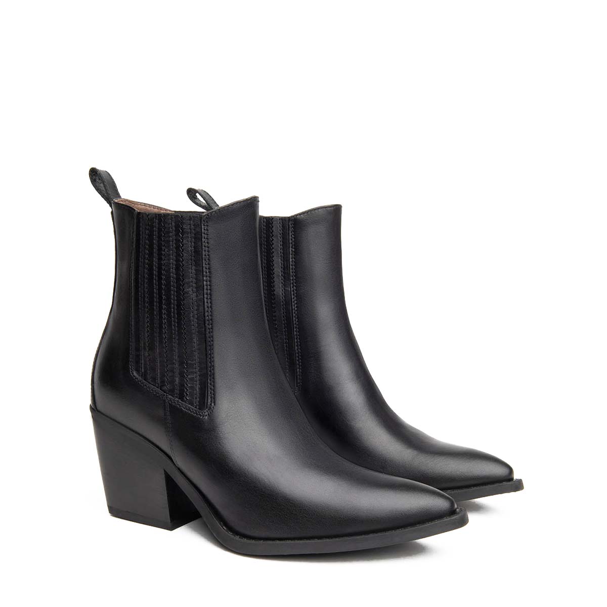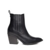Stivaletti stile texano in morbida pelle con elastici laterali ricoperti da fascette in pelle con taglio a zig zag. Tacco western di 7,5 cm e comoda linguetta sul tallone per agevolare la calzata. Design grintoso per un look di tendenza.
