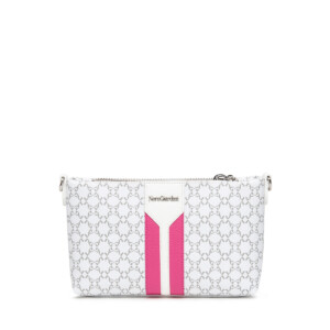 Presenta una tracolla in catena e chiusura con bottone magnetico sotto la patta.