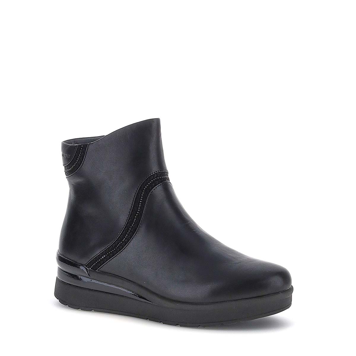 Stivaletti Stonefly in nappa color nero con apertura a cerniera laterale.