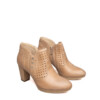 Tronchetti in pelle con inserto in pelle traforata e borchiette decorative. Tacco di 7 cm e plateau di 1,5 cm. La zip interna consente una calzata pratica e veloce.