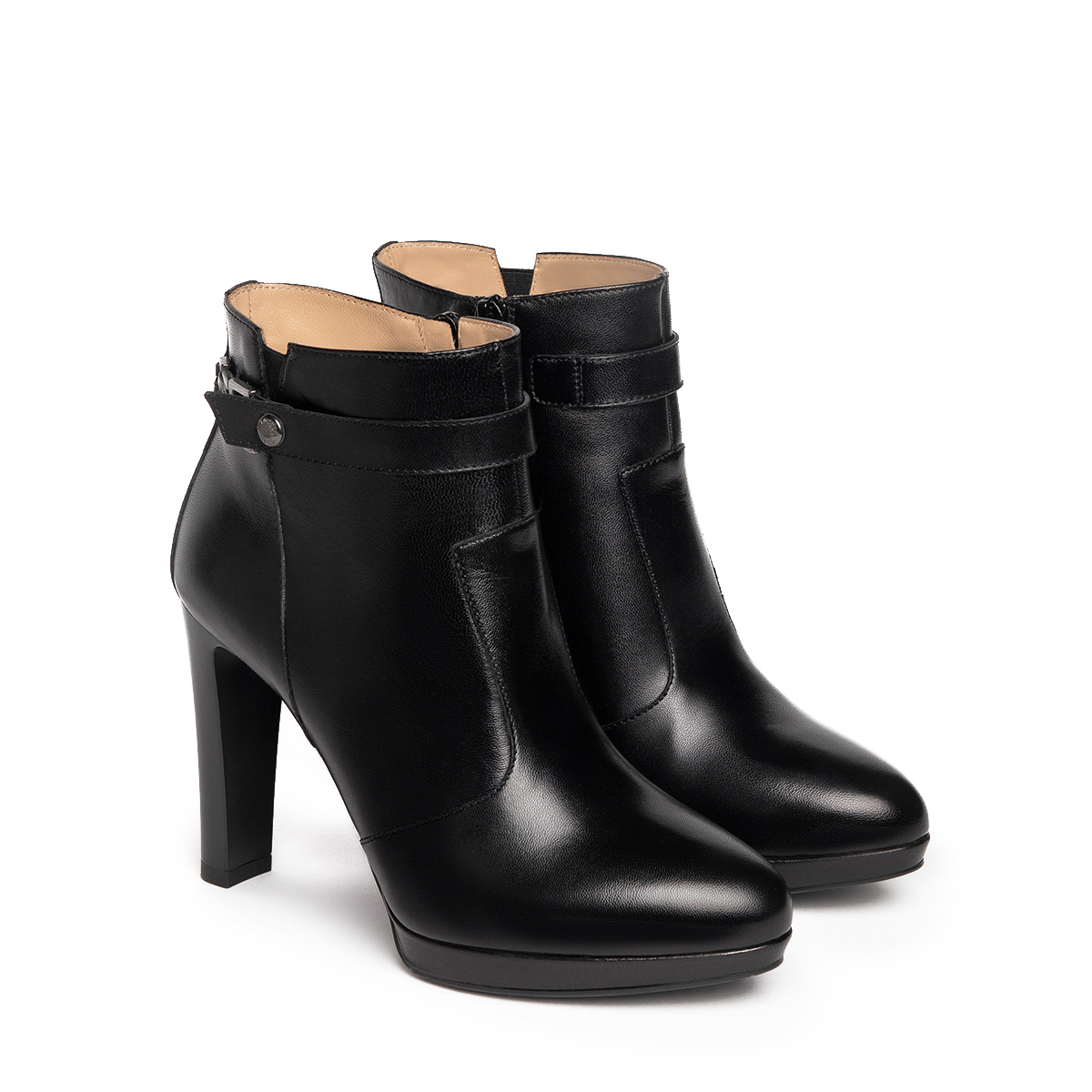 Tronchetto in pelle nera con zip laterale e tacco 9.5 cm. L’articolo con codice I205631DE ha il plateau alto 1.5 cm.