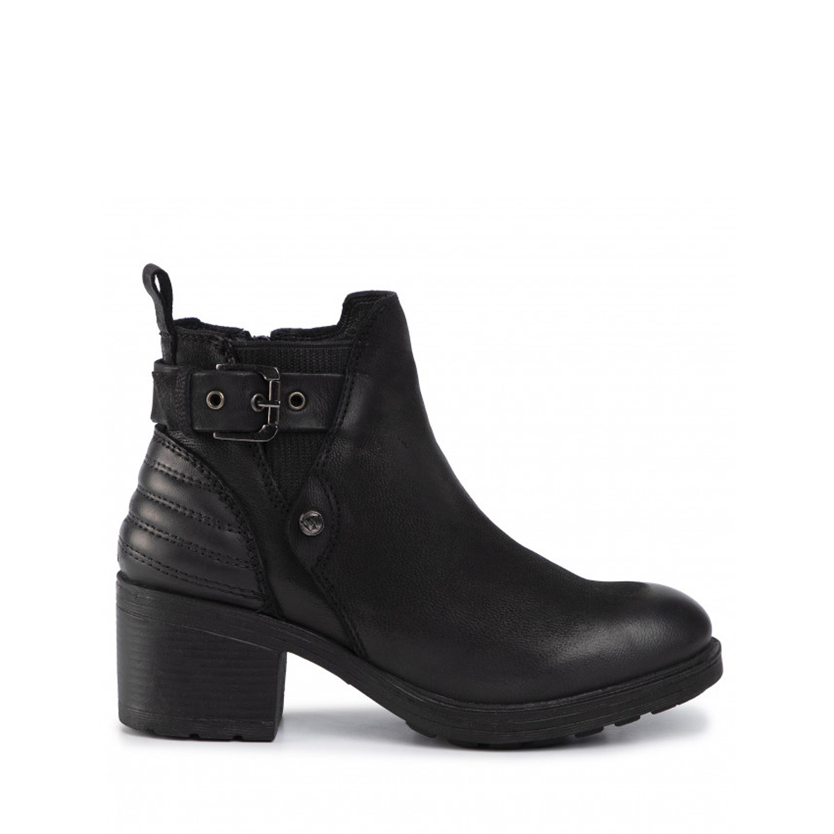 Tronchetto donna nero con tacco per slanciare la figura senza rinunicare al comfort. Sempre originale e perfetta in ogni occasione, questa calzatura è nata per conferire grinta e stile ai tuoi piedi.